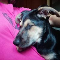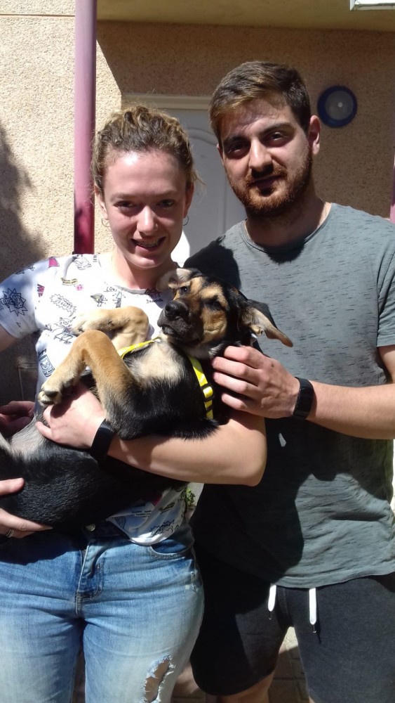 Su mamá es Banda, una perrita preciosa que se unió a esta asociación cuando estaba a punto de parir, es tamaño mediano (14 kilos).